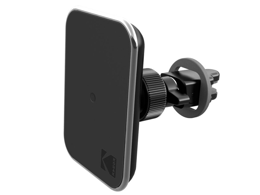 Магнитный автомобильный держатель "KODAK", крепление на дефлектор воздуховода, с функцией беспроводной зарядки. Мощность: 5Вт. напряжение: 4,75-5,5В. сила тока: 1,5-2А.