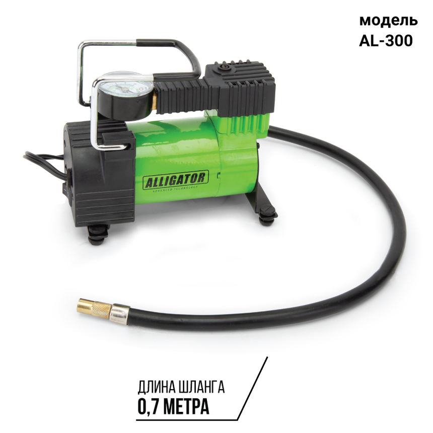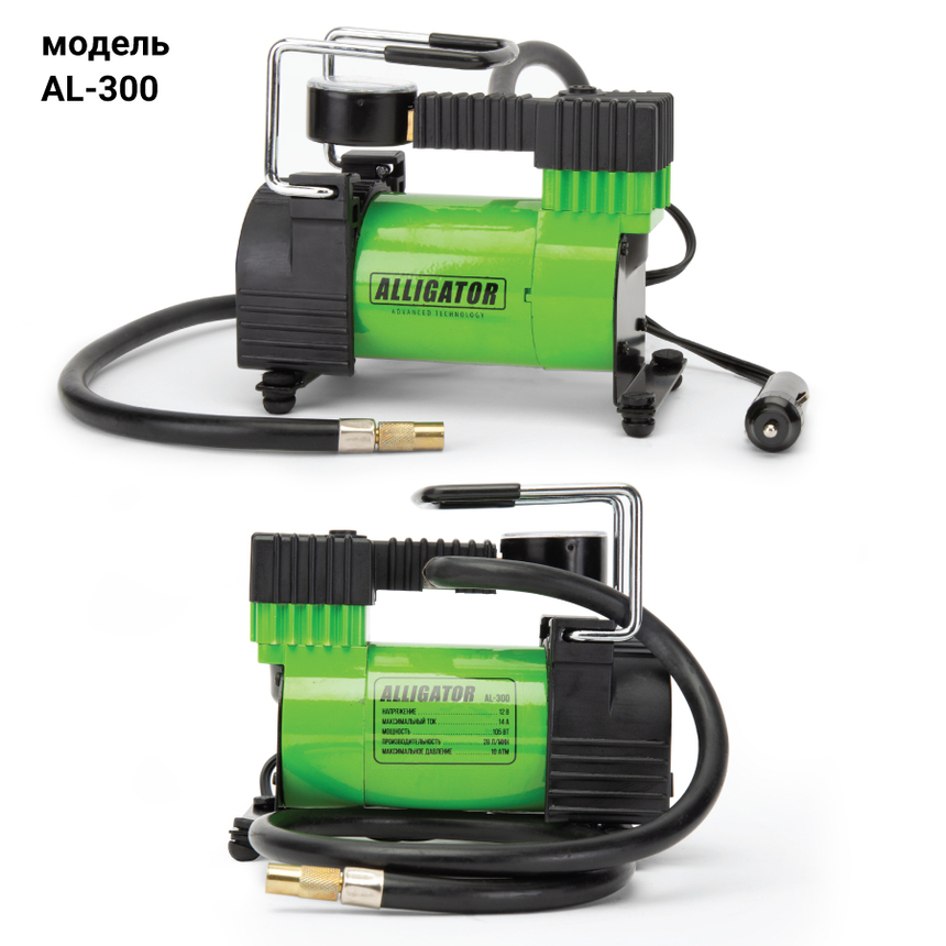 Переходники для мячей и матрацев делают модель практически универсальной. Мощность компрессора — 105 Вт, а максимальное давление — 10 ATM. Компрессор для накачивания ALLIGATOR AL-300 — оптимальное решение эконом-класса для современного автовладельца, мотоциклиста и велосипедиста. Работает при температуре от -20 до +50 °С. В комплекте — удобная сумка для хранения и переноски. Гарантия 1 год.