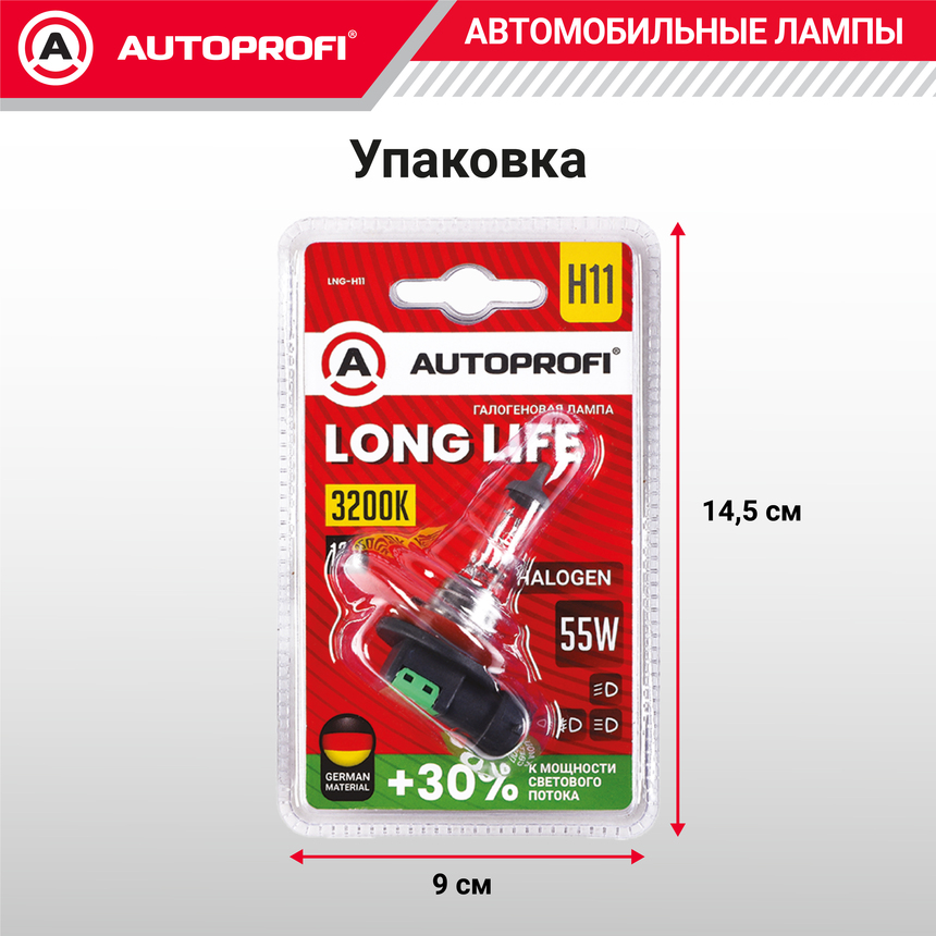 Линейка галогеновых ламп AUTOPROFI LONG LIFE - Галогеновые лампы со световым потоком на 30% мощнее чем у стандартных ламп. Имеют увеличенный более чем в 2 раза рабочий ресурс..