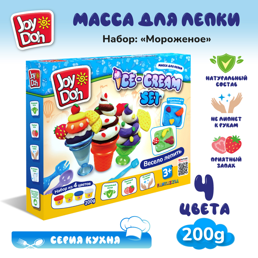 Масса для лепки Joy Doh, набор ICE-TREAT SET - ЭСКИМО, 3d формы, 8 аксессуаров, 4 баночки с тестом, (4 х 50г.)