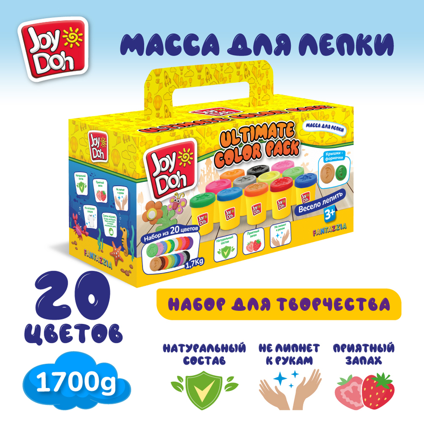 Масса для лепки Joy Doh, набор ULTIMATE COLOR PACK, подарочный чемоданчик, 20 баночек с тестом, (20 х 85 г.)