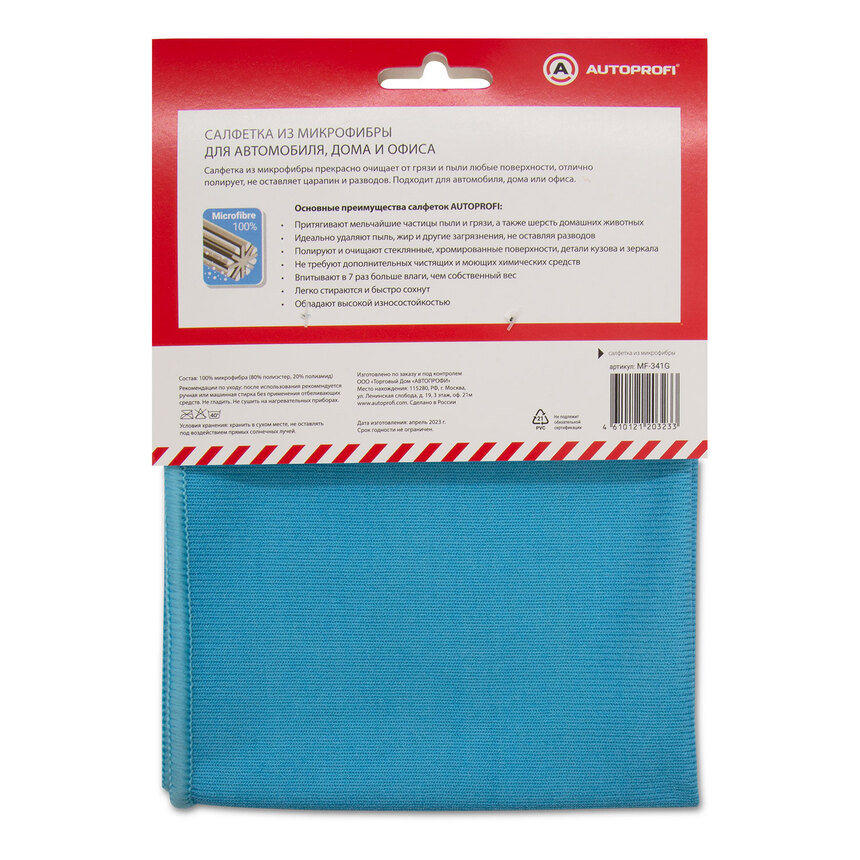 Салфетка из микрофибры "AUTOPROFI" для стёкол, 250 гр/м2., 30х40 см.,1шт. MF-341G