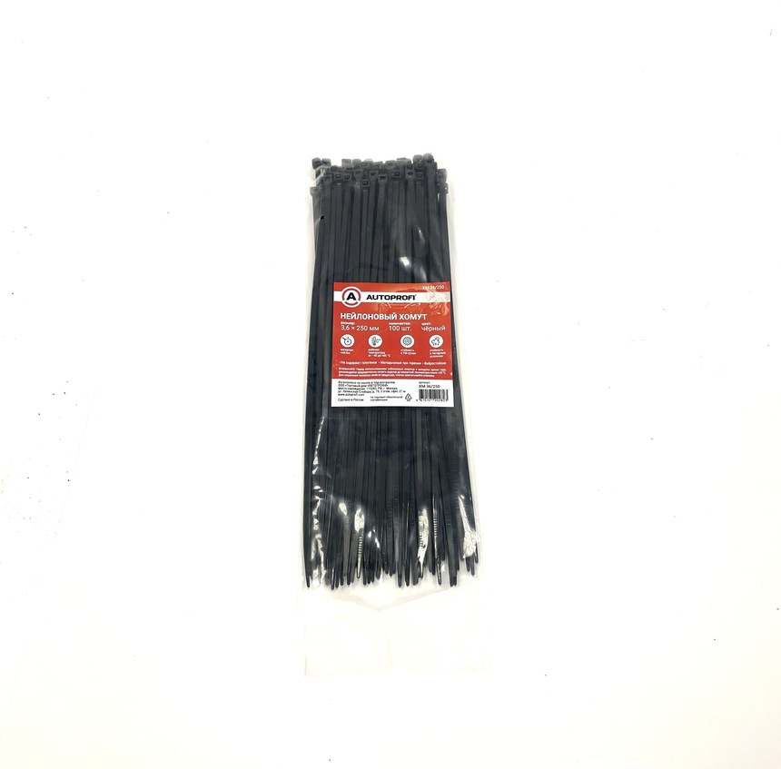 Нейлоновый хомут 3.6*250 мм, 100 шт, рабочая температура от -40 °С до +85 °С, черный