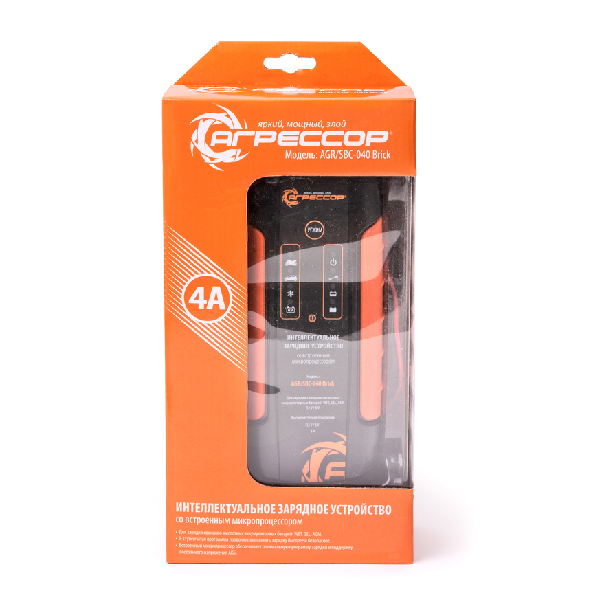 Цифровое зарядное устройство "Агрессор", 9 фаз зарядки, ток зарядки 4А, для 6V/12V АКБ (WET, AGM, GEL)