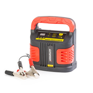 Трехфазная процедура зарядки дополнена защитой от перезарядки АКБ или неправильного подключения клемм к полюсам АКБ. Встроенная розетка 12В обеспечивает оптимальную силу тока для заряжания — 14А. Выбор силы тока можно выставить самостоятельно на 2, 6 или 12 ампер. Режим «Быстрая подзарядка» позволяет за 5 минут дать батарее заряд для пуска двигателя. Только для свинцово-кислотных аккумуляторов!